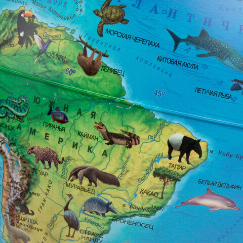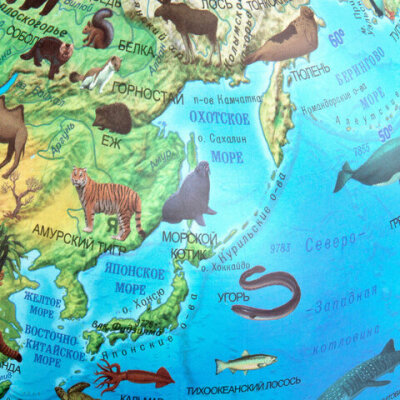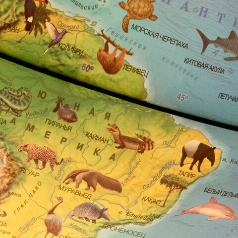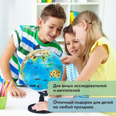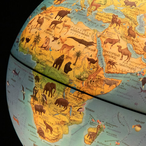• Глобус зоогеографический. Подходит для использования в детских садах и школах. Предназначен для изучения географии и животных, населяющих разные уголки нашей планеты.