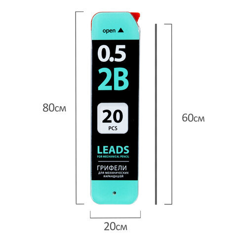 Грифели запасные 0,5 мм, 2B, BRAUBERG, КОМПЛЕКТ 20 шт., "Black Jack", 180448