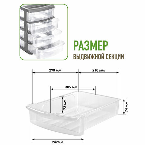 Бокс универсальный большой, 4 выдвижные секции, 37,6х25х35,5 см, М2768