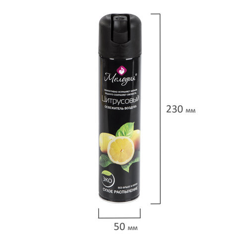 Освежитель воздуха аэрозольный с сухим распылением 300 мл МЕЛОДИЯ "ЦИТРУСОВЫЙ", 601906