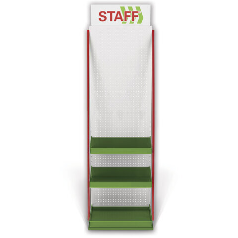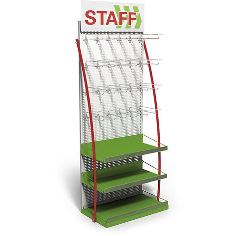 Стойка для размещения товара напольная STAFF, 2050x600x500 мм, 25 крючков, 3 полки, металл, 504876