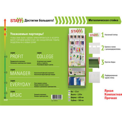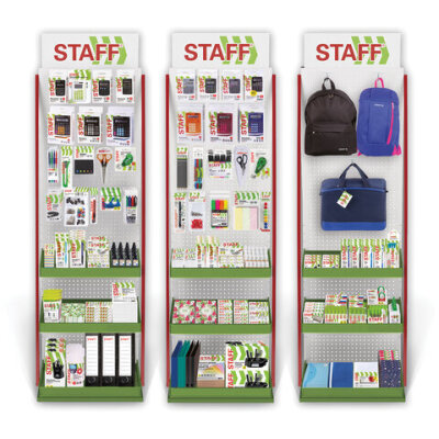 Стильная и вместительная фирменная стойка STAFF позволит выгодно разместить продаваемый ассортимент и повысить объем продаж.