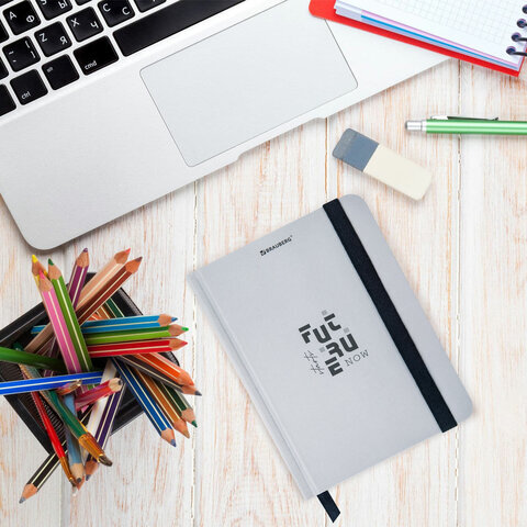 Блокнот с резинкой в клетку 96 л., МАЛЫЙ ФОРМАТ А6, 109х148 мм, твердая обложка, BRAUBERG, "Future", 116332
