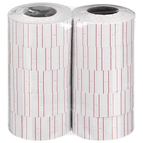 Этикет-лента 21х12 мм, прямоугольная, белая с красной полосой, КОМПЛЕКТ 10 рулонов по 1000 этикеток, 117546