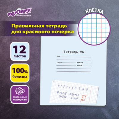Тетрадь ПРОПИСЬ № 6 12 л. клетка, со справочным материалом, обложка картон, ЮНЛАНДИЯ, 404849