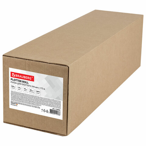 Бумага широкоформатная рулон для плоттера, 594 мм х 175 м х втулка 76 мм, 80 г/м2, белизна CIE 146%, BRAUBERG, 110454