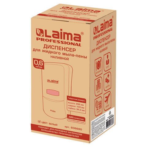 Дозатор для мыла-пены LAIMA PROFESSIONAL CLASSIC, НАЛИВНОЙ, 0,6 л, белый, ABS-пластик, 606680