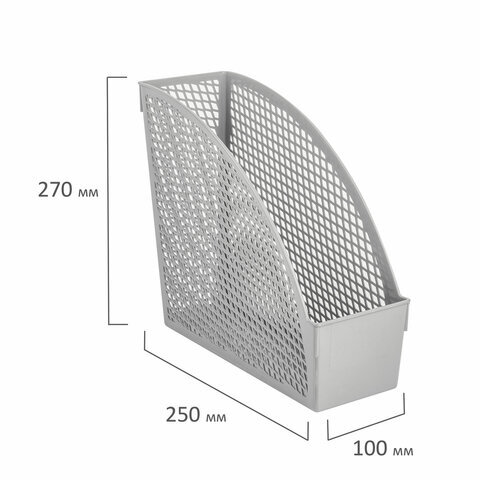 Лоток вертикальный для бумаг STAFF "Profit", 270х100х250 мм, сетчатый, полипропилен, серый, 237252