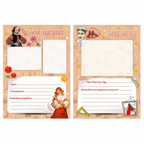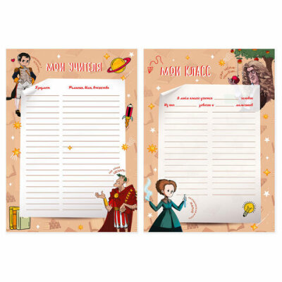 Листы-вкладыши для портфолио ШКОЛЬНИКА, 30 разделов, 32 листа, "Великие имена", ЮНЛАНДИЯ, 116370