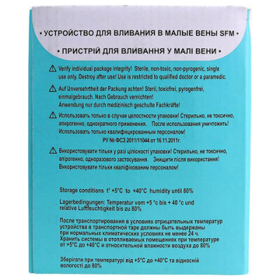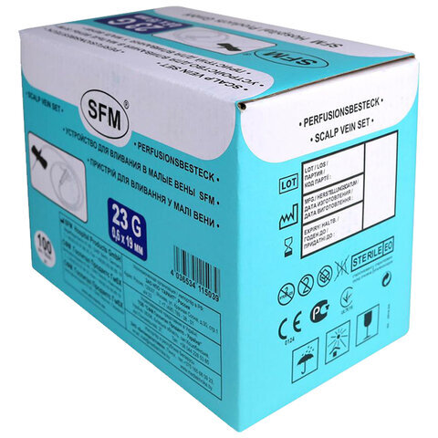 Иглы-бабочки для вливания в малые вены SFM 0,6 х 19 - 23G, КОМПЛЕКТ 100 штук, LUER