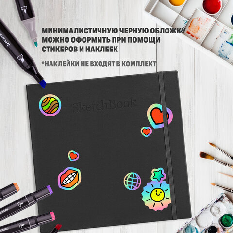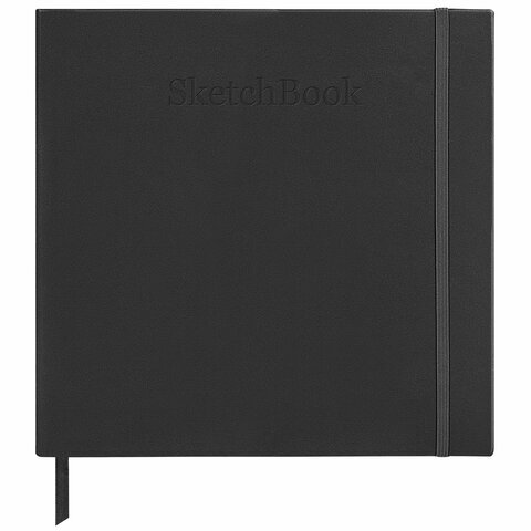 Скетчбук для графики и маркеров, "БРИСТОЛЬ" 200 г/м2, 195х195 мм, 32 листа, КОЖЗАМ, BRAUBERG ART PREMIERE, Черный, 115100