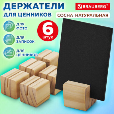 Ценникодержатель деревянный (ценники, реклама, фото) 3,5х3,5х3,5 см, КОМПЛЕКТ 6 шт., BRAUBERG, 291311