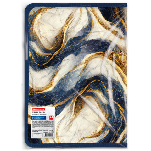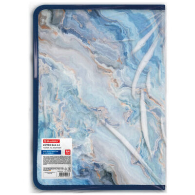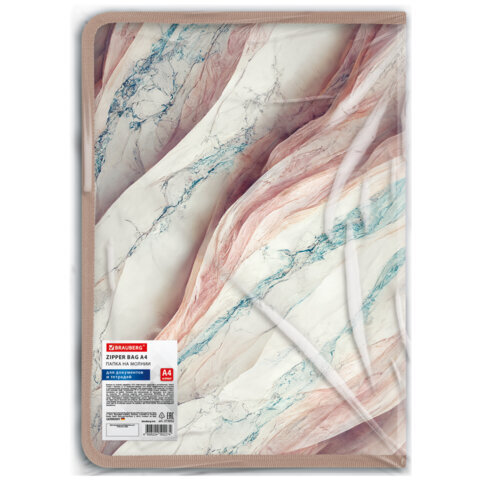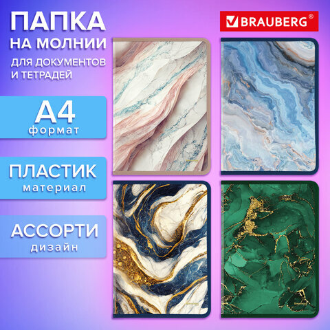Папка на молнии для документов и тетрадей пластиковая BRAUBERG "Мрамор", А4, 330х230 мм, 0,5 мм, ассорти, 273932