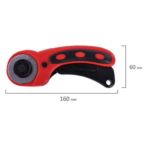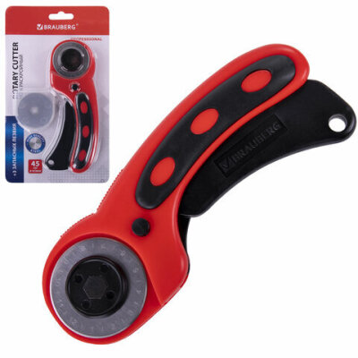 Роликовый нож BRAUBERG подходит для быстрого, точного и качественного разрезания всех видов ткани, кожи, замши, бумаги и прочих материалов.