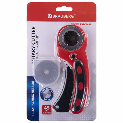 Нож раскройный роликовый 45 мм BRAUBERG PROFESSIONAL, 4 лезвия в комплекте, резиновые вставки, 238088
