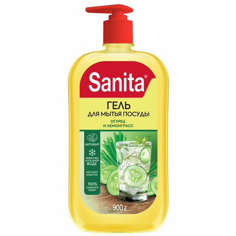 Гель для мытья посуды 900г SANITA "Огурец и лемонграсс", дозатор, 27863