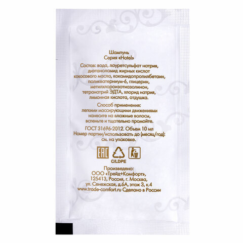 Шампунь одноразовый 10 мл, КОМПЛЕКТ 500 шт., HOTEL, саше, флоупак, 2000111