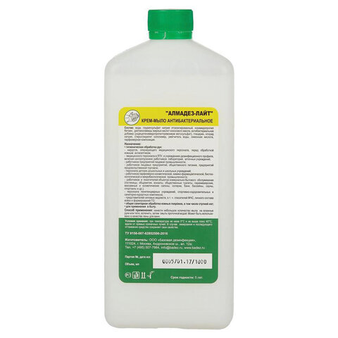 Крем-мыло антибактериальное 1 л АЛМАДЕЗ-ЛАЙТ, крышка, МАЛ-03