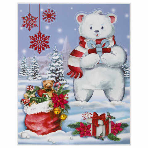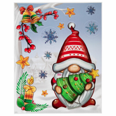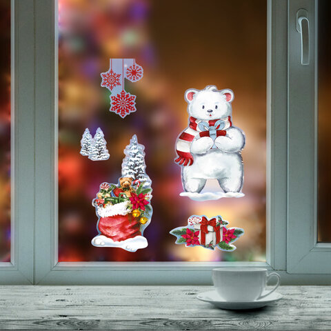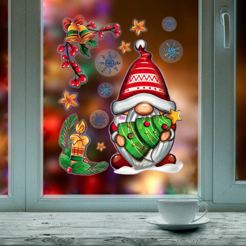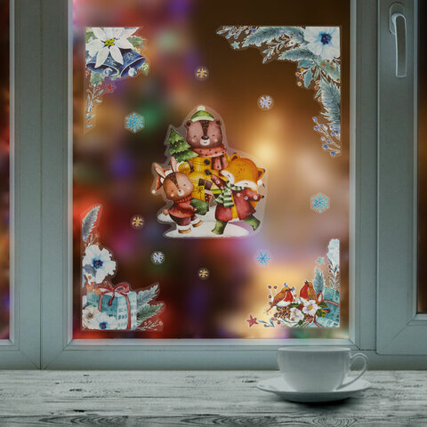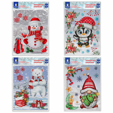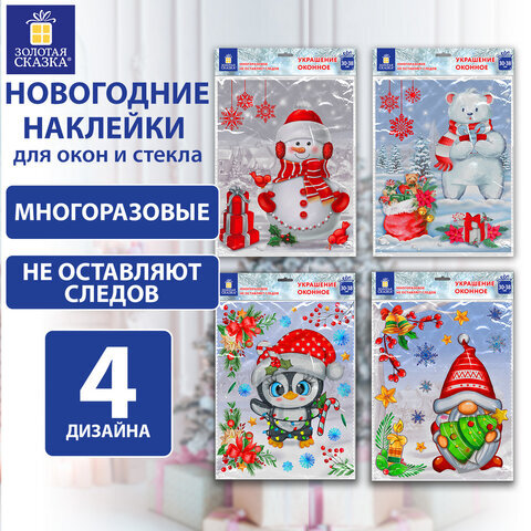 Наклейка для окон (1 штука) двусторонняя МНОГОРАЗОВАЯ 30х38 см, "Ассорти № 2", ЗОЛОТАЯ СКАЗКА, 591926