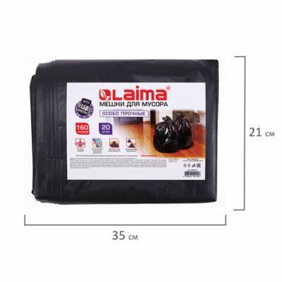 Мешки для мусора 160 л, черные, в пачке 20 шт., особо прочные, ПВД 50 мкм, 90х120 см, LAIMA