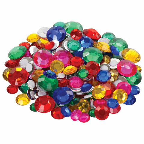 Стразы самоклеящиеся "Круглые", размер 8-15 мм, 30 г, 5 цветов, ОСТРОВ СОКРОВИЩ, 661386