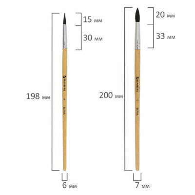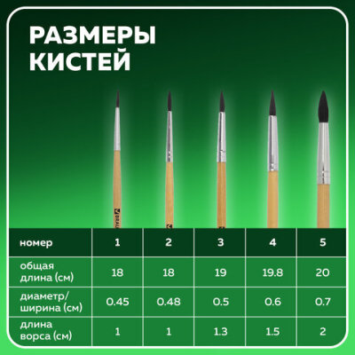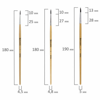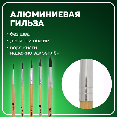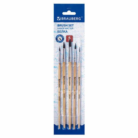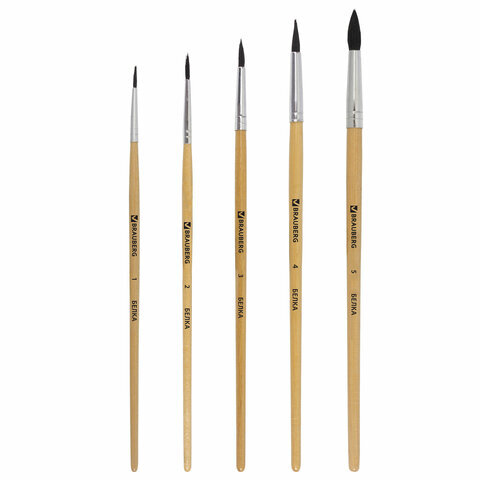 Кисти BRAUBERG, набор 5 шт. (белка, круглые № 1, 2, 3, 4, 5), блистер, 200217