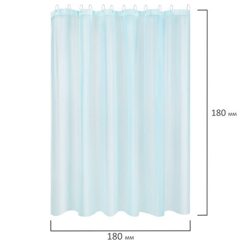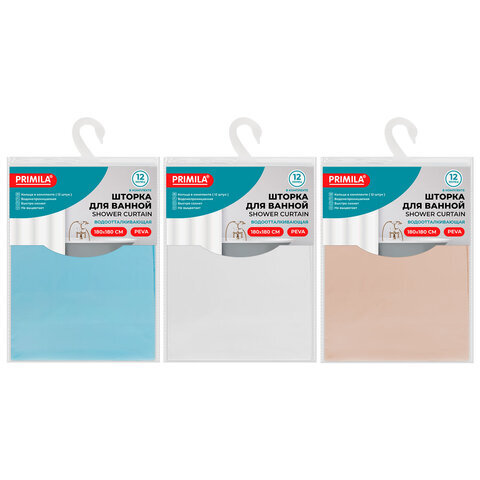 Шторка для ванной PEVA, 180х180 см, кольца в комплекте, 3 цвета ассорти (белый, голубой, коричневый), PRIMILA (ПРИМИЛА), 700072