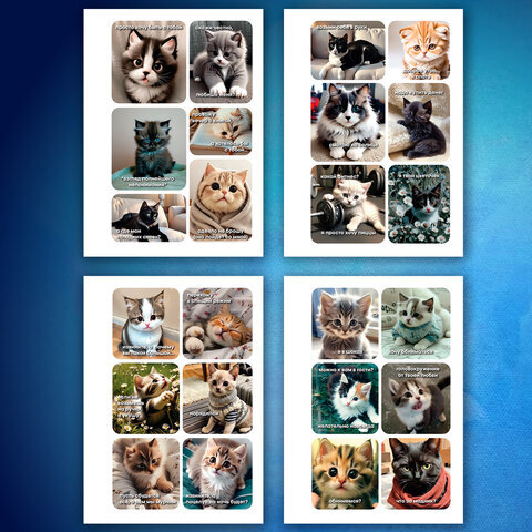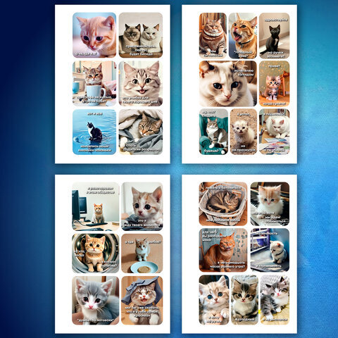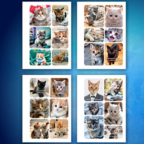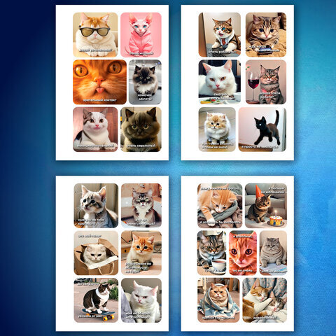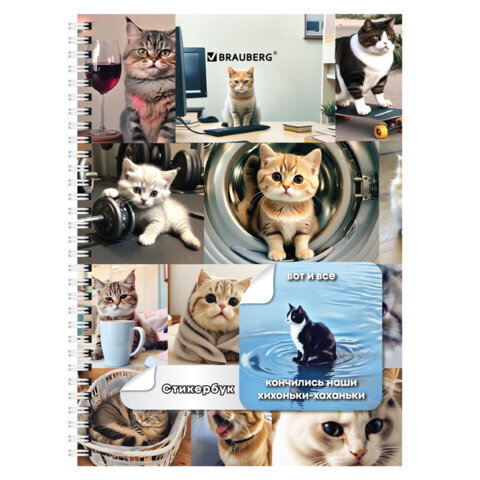 Стикербук ПРОСТО НАКЛЕЙ А6, 16 листов, 96 цветных стикеров, на гребне, BRAUBERG, "Коты мемы", 666050