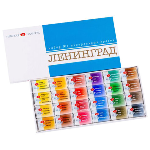 Краски акварельные художественные "Ленинград-1", 24 цвета, кювета 2,5 мл, картонная коробка, Невская Палитра, 1941015