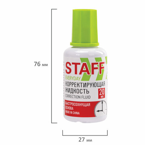 Корректирующая жидкость STAFF "EVERYDAY" быстросохнущая, 20 мл, с кисточкой, 228625