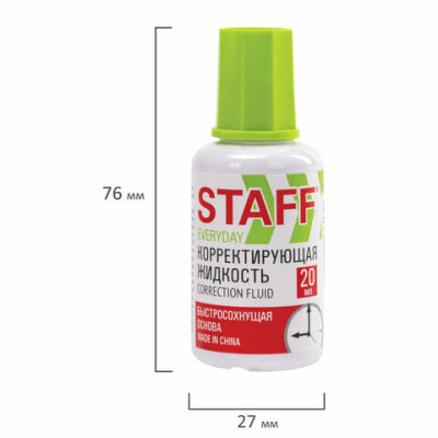 Корректирующая жидкость STAFF "Everyday" обеспечивает аккуратное исправление печатного или рукописного текста. Быстро высыхает и позволяет наносить новые надписи почти сразу.