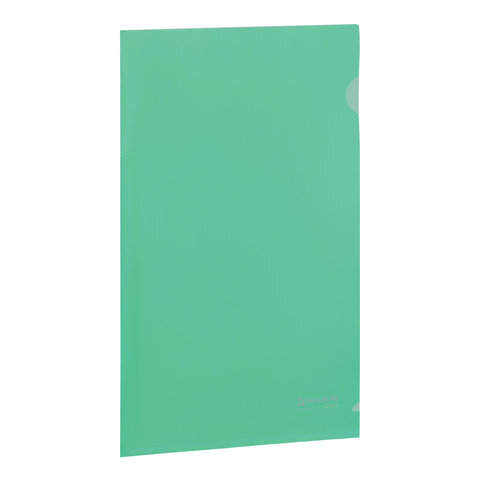 Папка-уголок жесткая BRAUBERG, зеленая, 0,15 мм, 221639