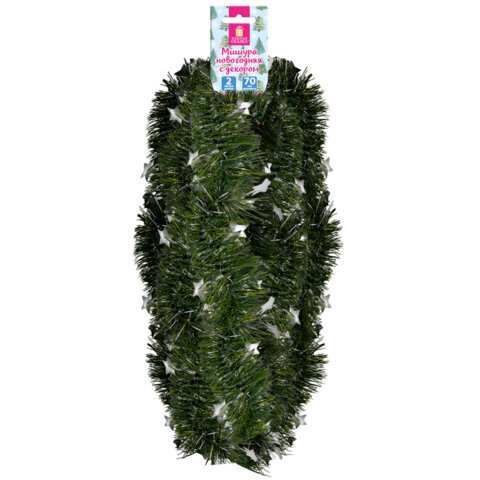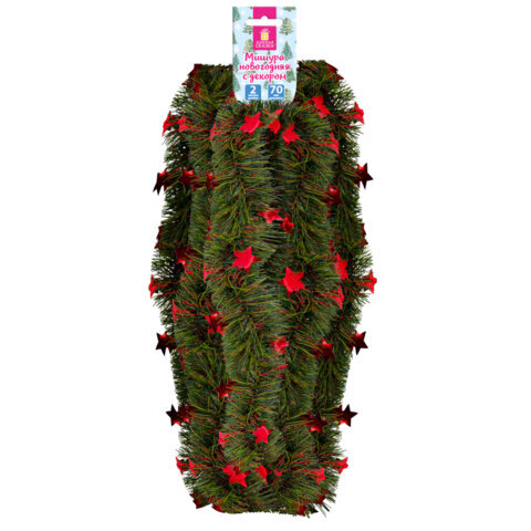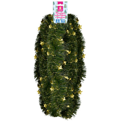 Мишура (1 штука) с декором, диаметр 70 мм, длина 2 м, матовая, ассорти 4 дизайна, ЗОЛОТАЯ СКАЗКА, 592424