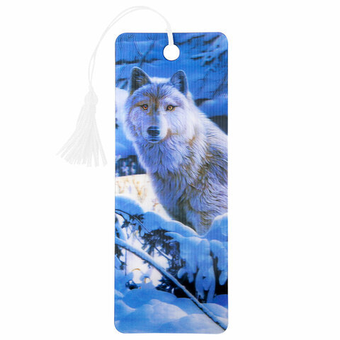 Закладка для книг с линейкой 3D-ОБЪЕМНАЯ BRAUBERG, "Белый волк", с декоративным шнурком, 125752