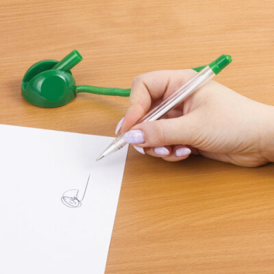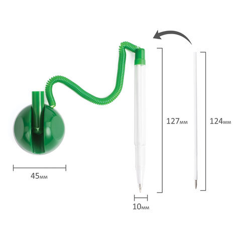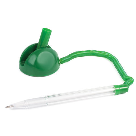 Ручка шариковая настольная BRAUBERG "Стенд-Пен", СИНЯЯ, пружинка, корпус зеленый, линия письма 0,5 мм, 141350