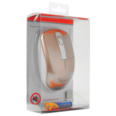 Мышь беспроводная бесшумная GEMBIRD MUSW-400-G, 3 кнопки+1 колесо-кнопка, оптическая, бело-золотая
