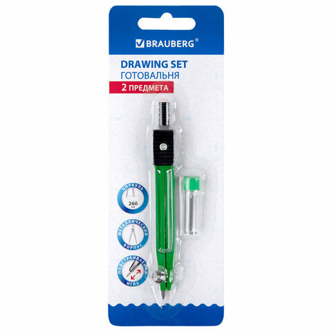 Готовальня BRAUBERG "Klasse", 2 предмета: циркуль 110 мм с подстраиваемой иглой, грифель, блистер, 210319