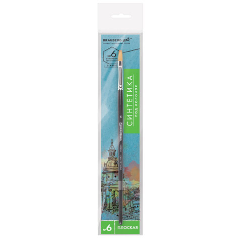 Художественная профессиональная синтетическая кисть BRAUBERG ART "CLASSIC" № 6 предназначена для работы с акварелью, с масляными красками и другими материалами для живописи.