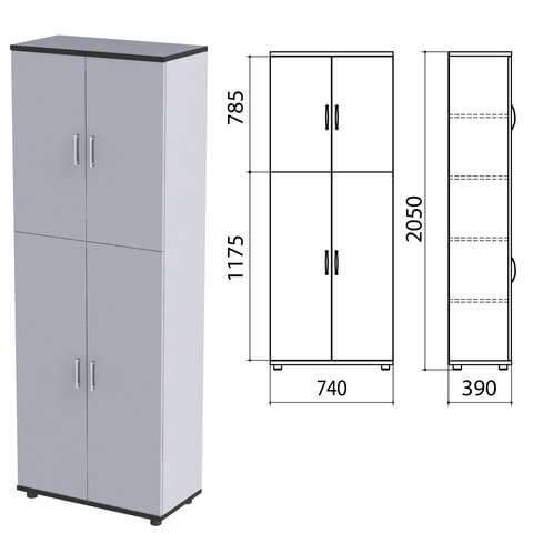 Шкаф закрытый "Монолит", 740х390х2050 мм, цвет серый (КОМПЛЕКТ)