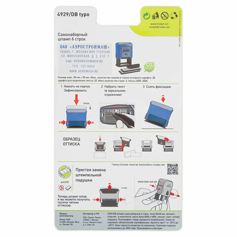 | Размер оттиска | 50х30 мм |