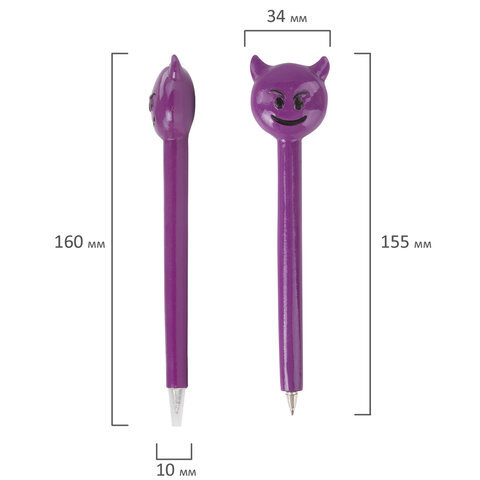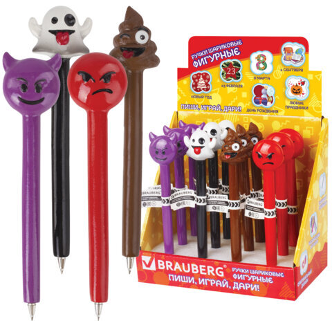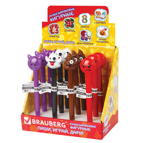 Ручка фигурная "СМАЙЛИКИ МИКС-2", СИНЯЯ, 4 дизайна ассорти, линия письма 0,5 мм, дисплей, BRAUBERG, 142772