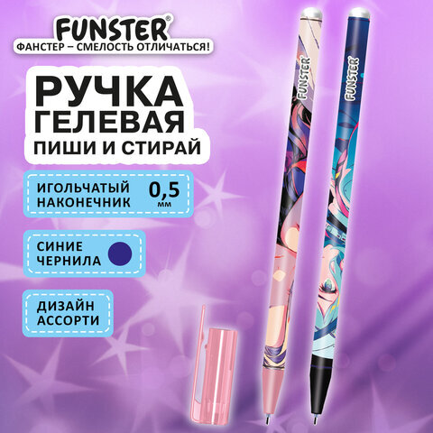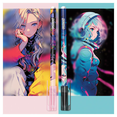 Ручка стираемая гелевая с принтом FUNSTER (ФАНСТЕР) "ANIME", СИНЯЯ, корпус ассорти, игольчатый наконечник 0,5 мм, линия 0,35 мм, 144412