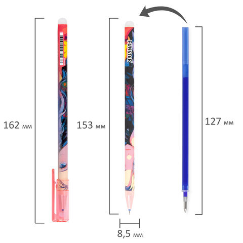 Стираемая гелевая ручка FUNSTER "ANIME" – универсальный помощник для ведения аккуратных записей за счет обесцвечивающихся термочернил и специального ластика, позволяющего вносить корректировки в текст сразу после написания.