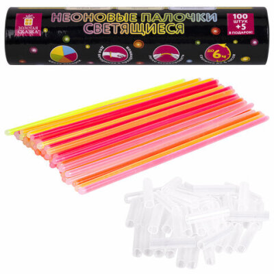 Светящиеся (неоновые) палочки 100 штук + 5 в ПОДАРОК! в тубе, ассорти, ЗОЛОТАЯ СКАЗКА, 662596