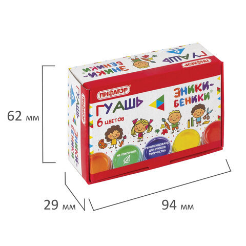 Гуашь ПИФАГОР ЭНИКИ-БЕНИКИ", 6 цветов по 10 мл, 191329