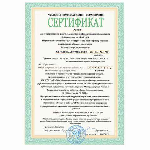• Непрограммируемый инженерный калькулятор BRAUBERG SC-991EX-Plus выполняет выполняет все основные вычисления, которые понадобятся школьникам на экзаменах и контрольных работах. Сертифицирован для использования на ЕГЭ и ОГЭ по физике, химии, географии.