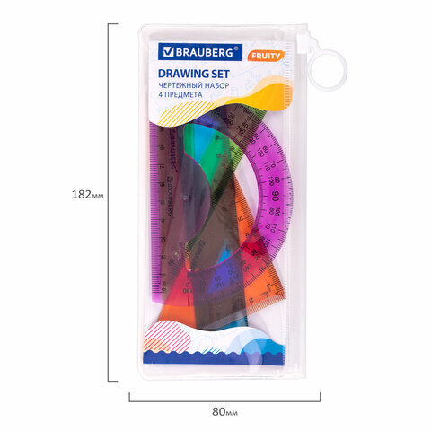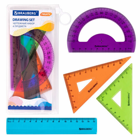 Набор чертежный BRAUBERG "FRUITY" предназначен для выполнения чертежных и измерительных работ в школе и дома.