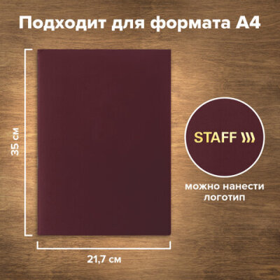 Папка адресная бумвинил без надписи, формат А4, бордовая, индивидуальная упаковка, STAFF "Basic", 129634