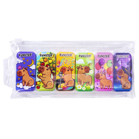 Корректирующая лента FUNSTER (ФАНСТЕР) "КАПИБАРЫ", 5 мм х 5 м, КОМПЛЕКТ 6 штук, пенал с zip-замком, 273021