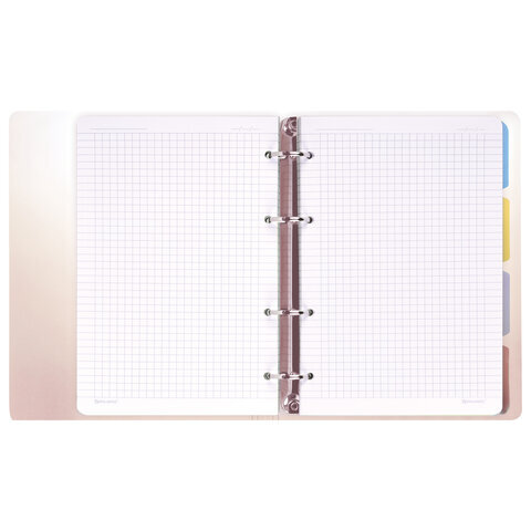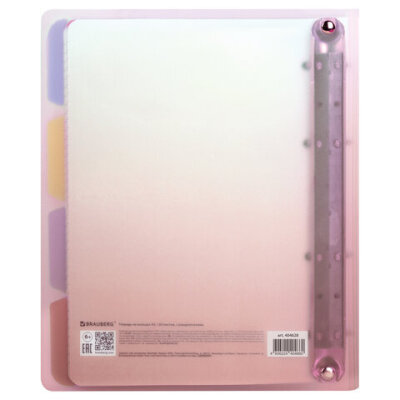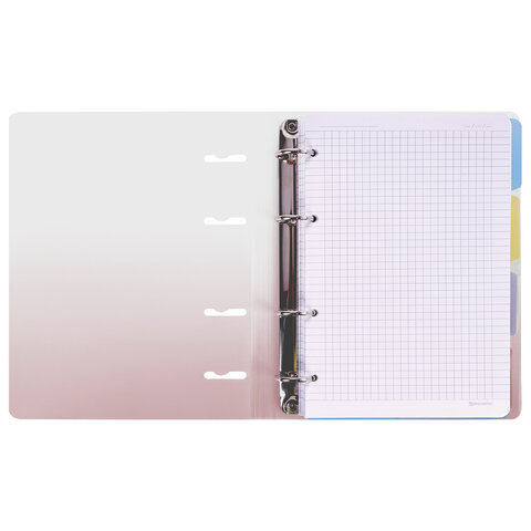 • Тетрадь на кольцах с пластиковой градиентной обложкой станет незаменимым помощником в учебе и работе. Импортный кольцевой механизм позволяет легко сменить внутренний блок.